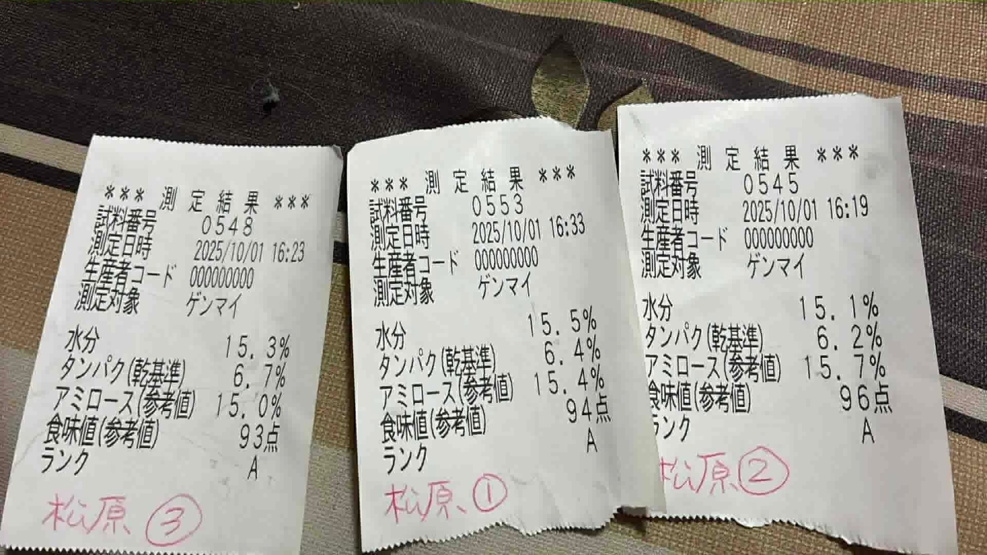 おかげさまで、食味値は94点を獲得しました。Aランクのお米です。
